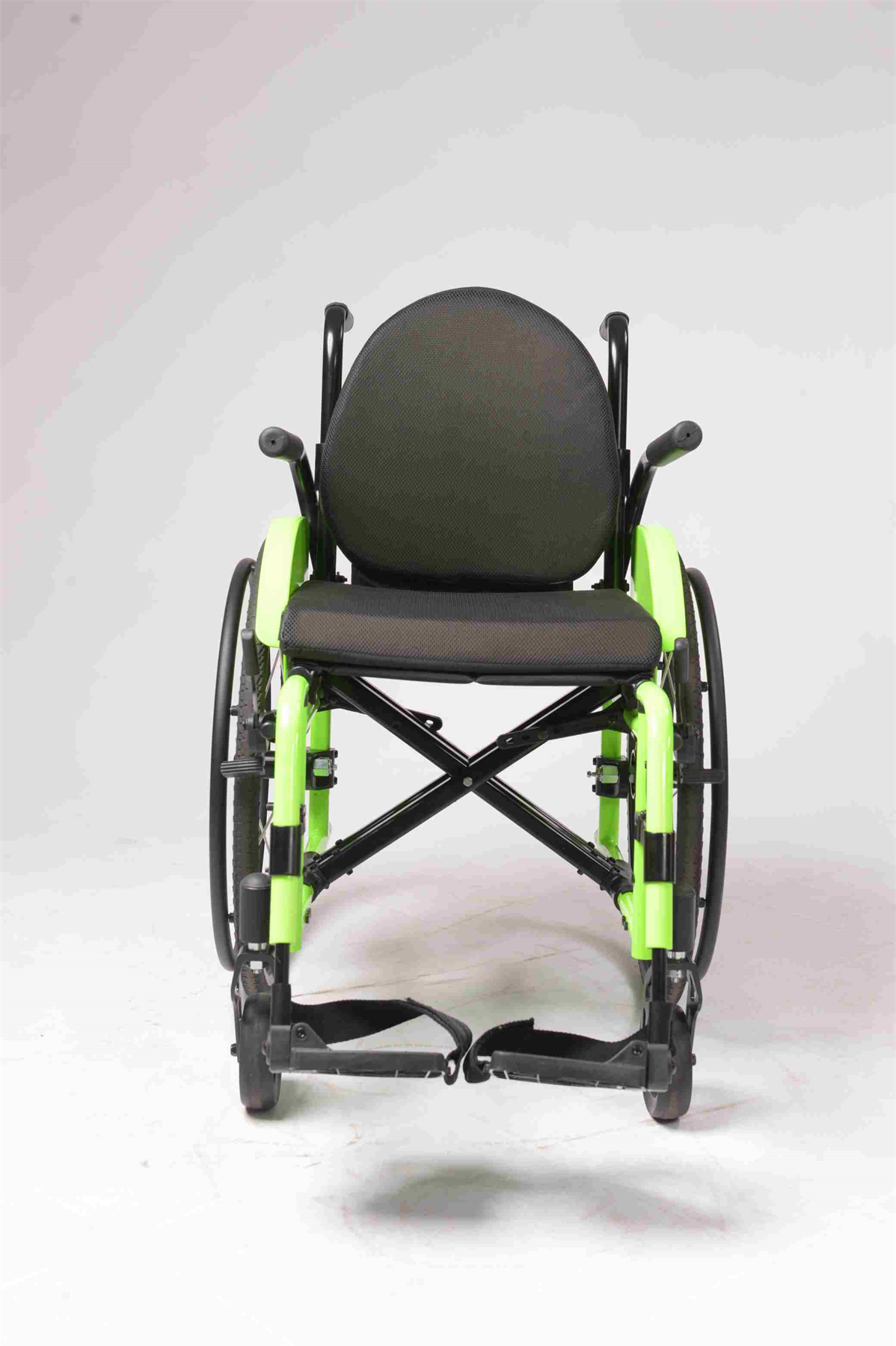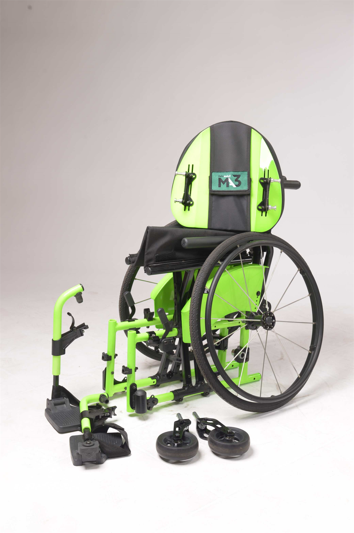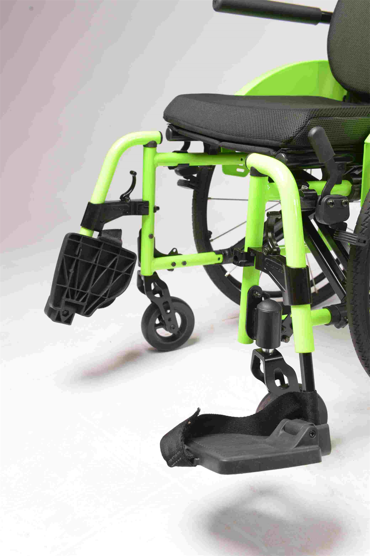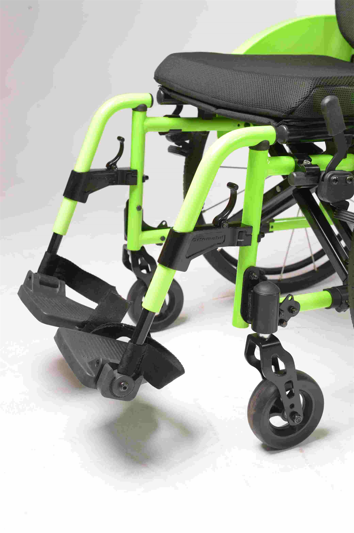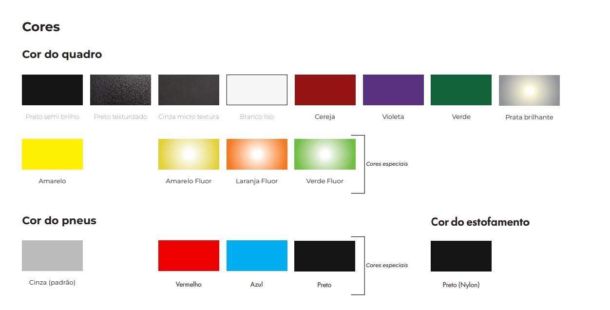 DIANTEIRA: 5" x 40mm polipropileno antifuro, garfo alumínio, eixo Quick Release com ajuste de ângulo